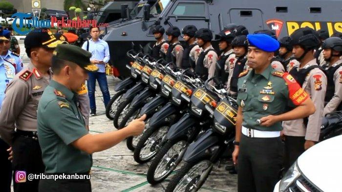 Pantauan di pangkalan Angkatan Udara Roesmin Nurjadin Pekanbaru, ratusan aparat keamanan tampak bersiaga menyambut kedatangan presiden.