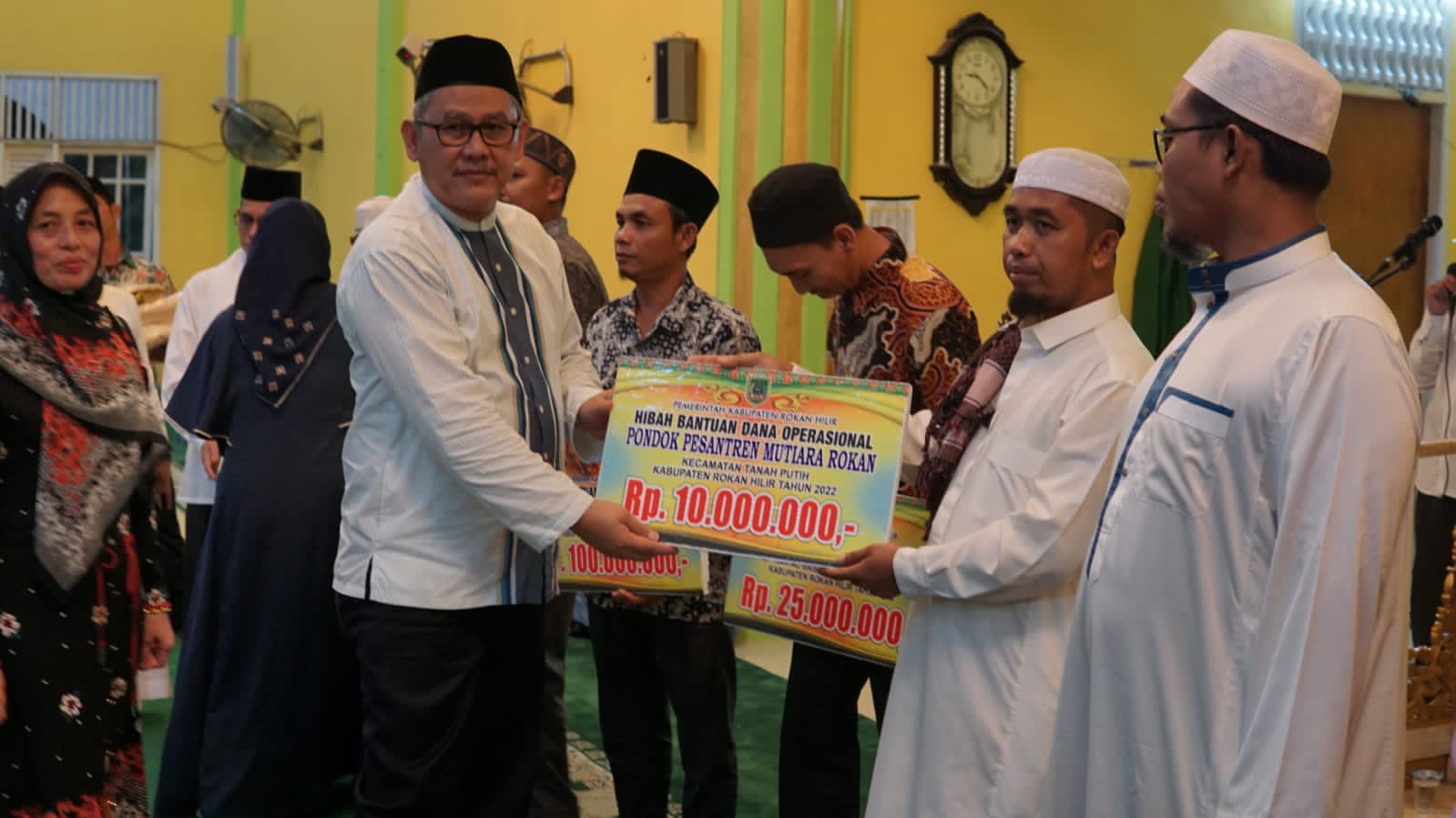Kemudian dana hibah juga diserahkan untuk operasional Mesjid Istiqomah jalan Inpah kepenghuluan Teluk Berembun Kecamatan Tanah Putih sebesar Rp 100 juta, dana operasional pondok pesantren Bidayatul Hidayah sebesar Rp 10 juta serta operasional pondok pesantren Mutiara Rokan sebesar Rp 10 Juta.