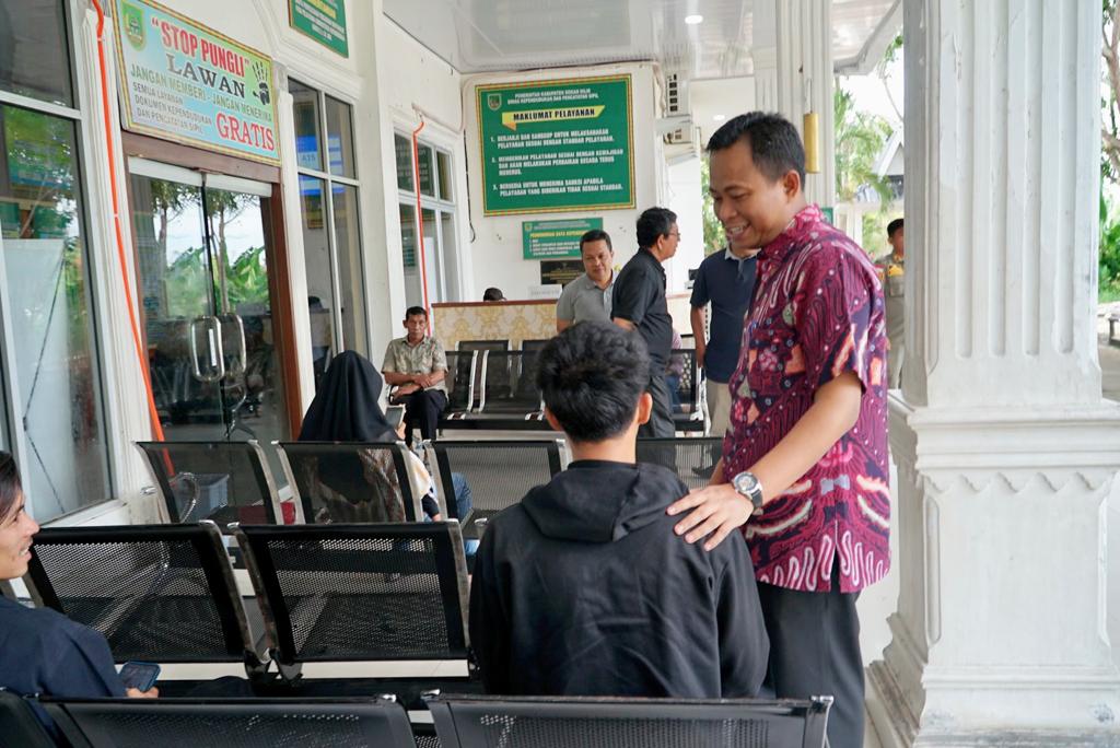 Kunjungan Wakil Bupati juga membuat para masyarakat yang sedang antri mengurus administrasi di kantor itu memanfaatkan situasi dengan menyalami Wakil Bupati H. Sulaiman dan berbincang-bincang.