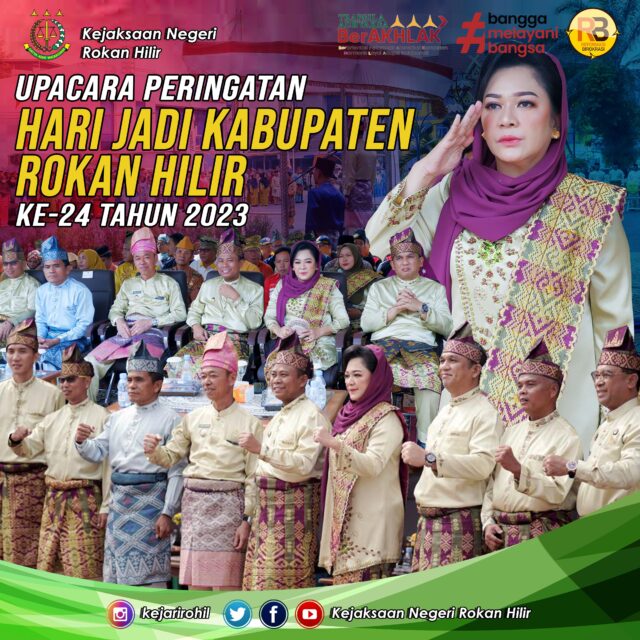 Rohilpost.COM, BAGANSIAPIAPI – Kepala Kejaksaaan Negeri (Kajari) Rokan Hilir (Rohil), Yuliarni Appy SH., MH, hadiri Upacara Peringatan Hari Jadi Rokan Hilir ke-24.