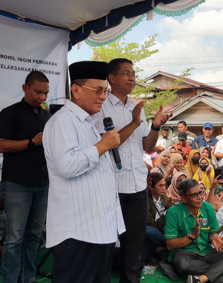 Masyarakat tumpah ruah di ruas jalan Kecamatan kelurahan Bagan Punak Bagansiapiapi untuk menghadiri kampanye dialogis pasangan calon nomor urut 2 H Bistamam dan Jhony Charles, Kamis (10/10). Didominasi oleh kaum emak emak ini, kehadiran perdana H Bistamam di kampanye nya disambut antusias memenuhi lokasi. Dihadapan para pendukung, H Bistamam di dampingi Jhony Charles menjelaskan keseriusannya untuk membangun Rokan Hilir kedepannya.